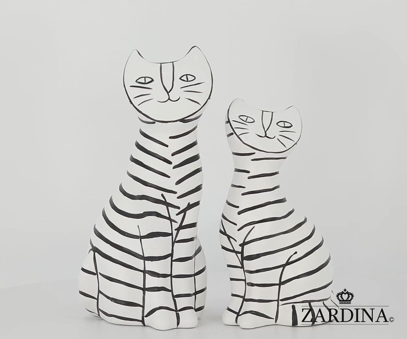 White Smiley Kittens Hand Painted Art Deco Cat Sculpture Ornament Statue